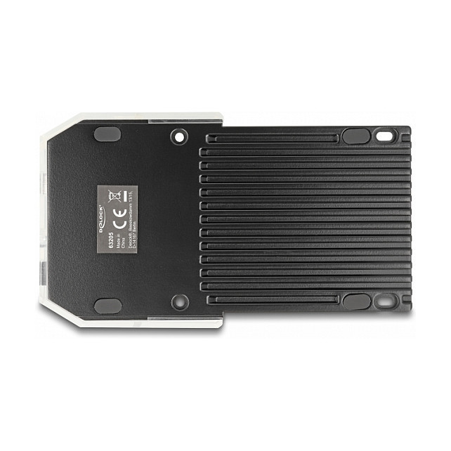 The bottom consists of a stable metal plate with cooling fins. These provide a passive cooling for the inserted memory."