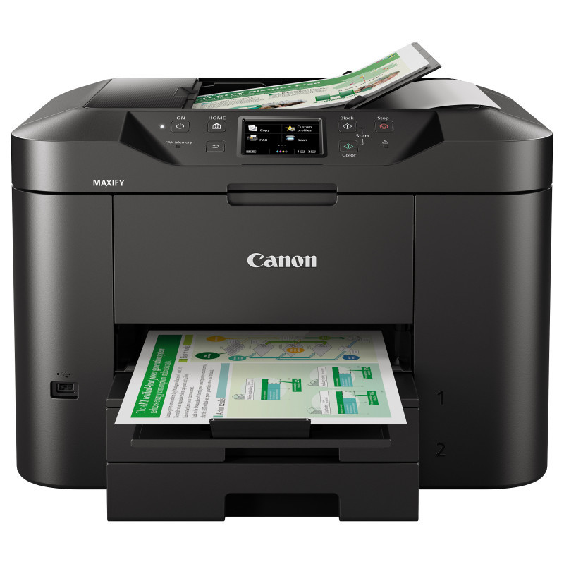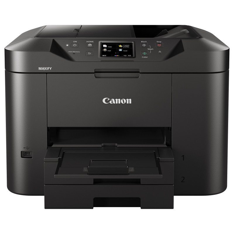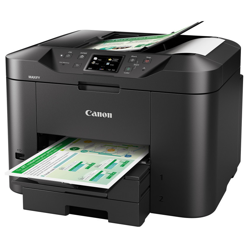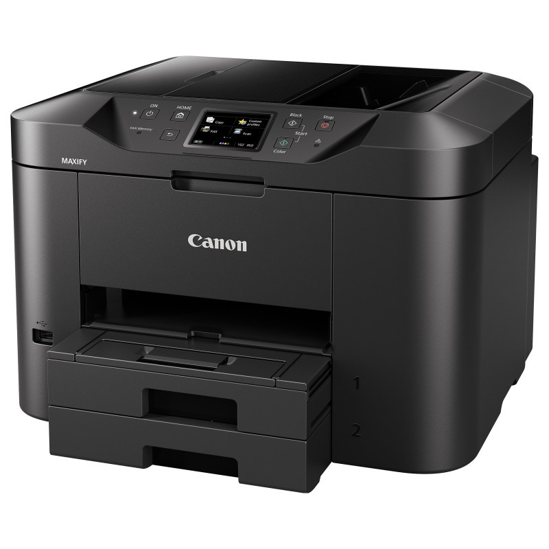 "Canon MAXIFY MB2750. Print technology: Inkjet, Printing: Colour printing, Maximum resolution: 600 x 1200 DPI, Print speed (colour, normal quality, A4/US Letter): 15.5 ppm. Copying: Colour copying. Scanning: Colour scanning, Optical scanning resolution: 1200 x 1200 DPI. Faxing: Colour faxing. Maximum ISO A-series paper size: A4. Wi-Fi. Product colour: Black"\n"All-In-One colour inkjet for home offices. The Canon MAXIFY MB2750 Series provides mobile printing and cloud integration, while its 500-sheet paper capacity and fast 24 ipm mono print speed maximise productivity.