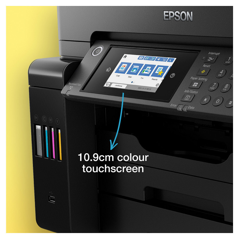 The ET-16605 is designed for office tasks with A3+ print, A3 scan, A3 copy and fax. It's easy to navigate the extensive range of features via the 10.9cm LCD touchscreen and hard keys.