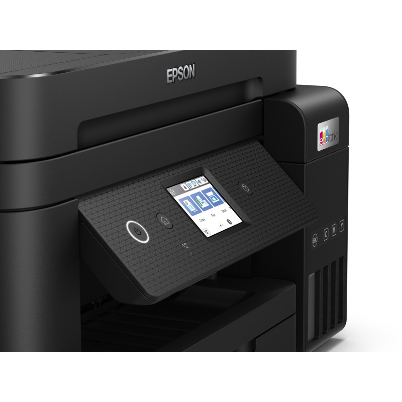 "Epson EcoTank ET-4850. Print technology: Inkjet, Printing: Colour printing, Maximum resolution: 4800 x 1200 DPI, Print speed (colour, normal quality, A4/US Letter): 20 ppm. Copying: Colour copying. Scanning: Colour scanning, Optical scanning resolution: 1200 x 2400 DPI. Faxing: Colour faxing. Duplex functions: Print. Maximum ISO A-series paper size: A4. Wi-Fi. Direct printing. Product colour: Black"\n"Say goodbye to cartridges