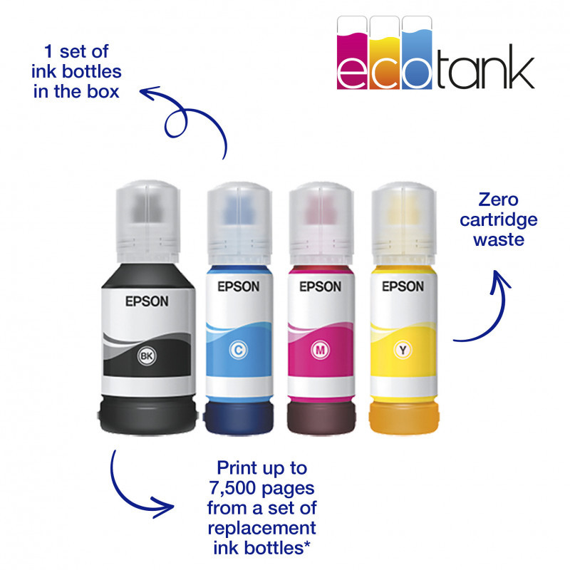 Minimising refills, this EcoTank can print thousands of pages before needing more ink. Two front trays offer a capacity of 500-sheets. Free yourself from manual page loading with a generous 50-sheet rear feed and ADF.