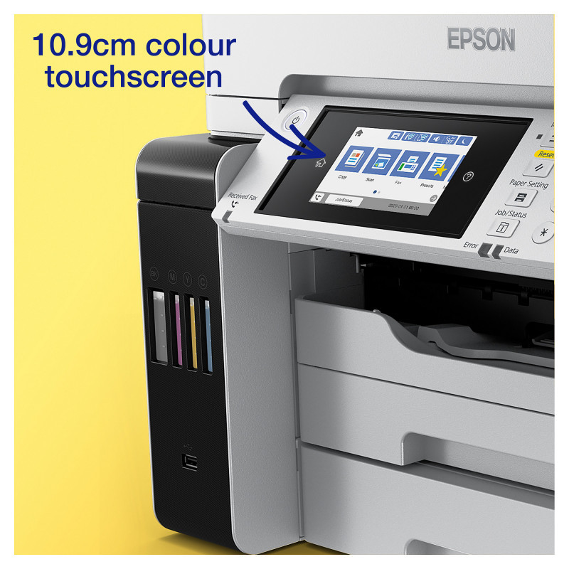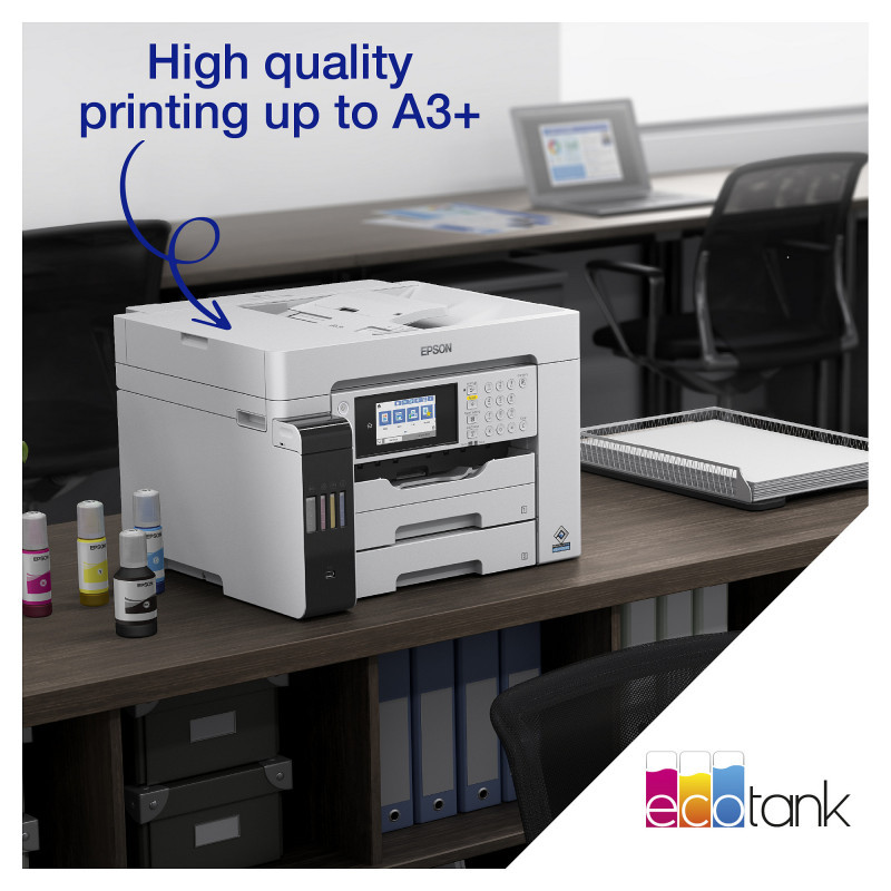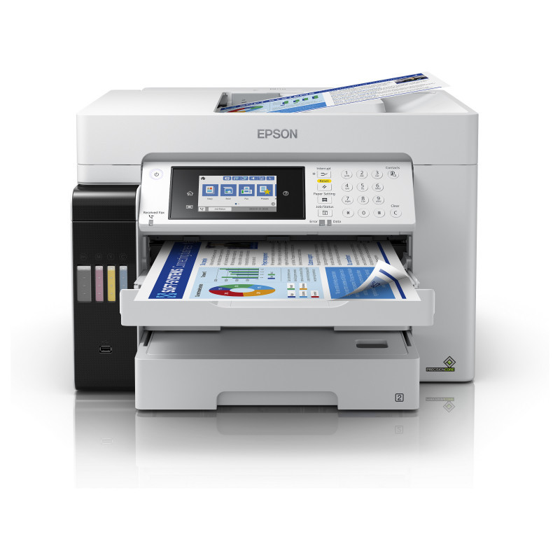 "Epson EcoTank Pro ET-16685. Print technology: Inkjet, Printing: Colour printing, Maximum resolution: 4800 x 1200 DPI, Print speed (colour, normal quality, A4/US Letter): 25 ppm. Copying: Colour copying. Scanning: Colour scanning, Optical scanning resolution: 1200 x 1200 DPI. Faxing: Colour faxing. Duplex functions: Copy, Print, Scan. Maximum ISO A-series paper size: A3. Wi-Fi. Direct printing. Product colour: White"\n"Keep on saving