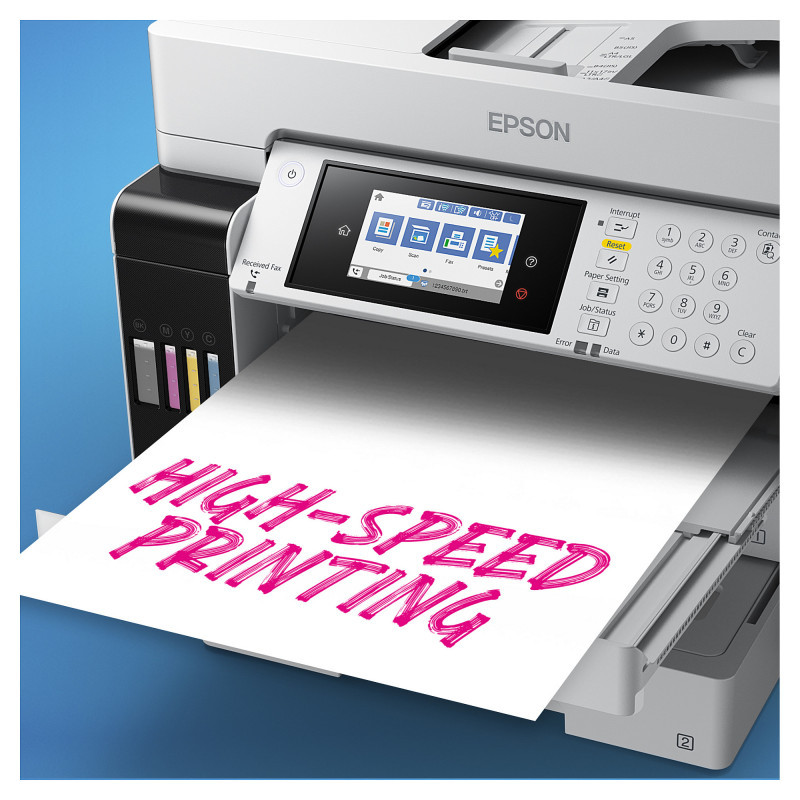 The ET-16685 offers a first page out time of just 5.5 seconds* and print speeds up to 25 pages per minute. The automatic document feeder can scan up to 26 images per minute.
