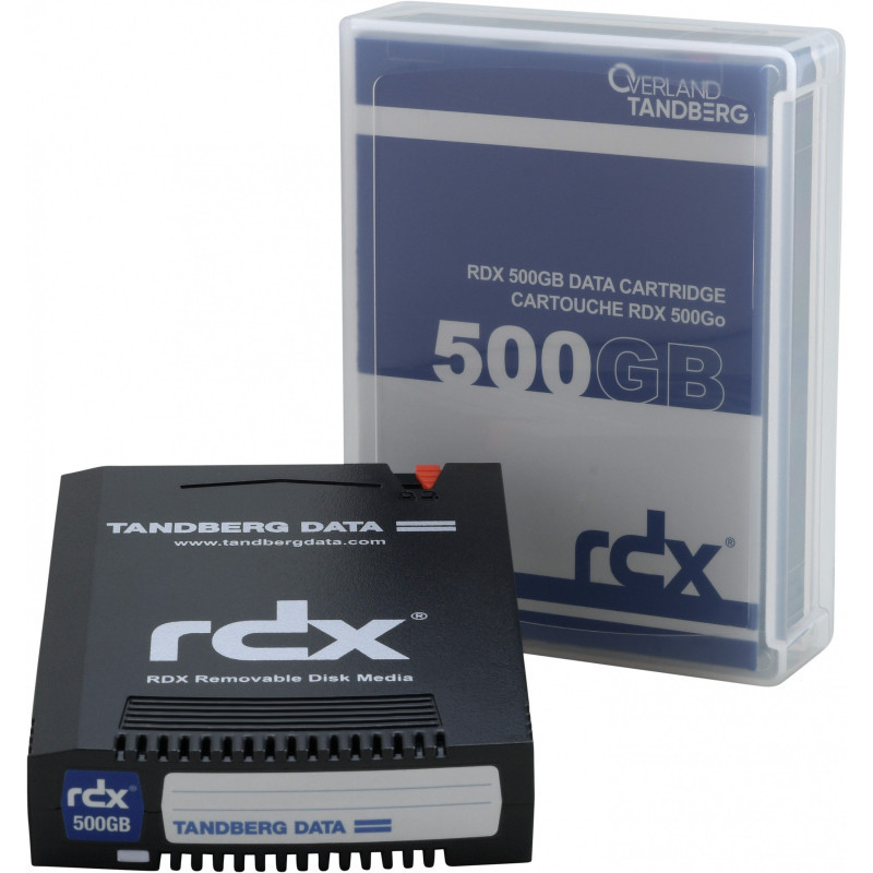 "Overland-Tandberg O-T RDX HDD 500GB Cartridge (single). Product type: RDX cartridge, Media type: RDX, Native capacity: 500 GB. Transfer rate: 150 MB/s. Width: 87 mm, Depth: 119 mm, Height: 23 mm. Quantity per pack: 1 pc(s). Mean time between failures (MTBF): 550000 h"\n"The HDD-based RDX data cartridges are ideal for backup, restore and long term archiving tasks. With capacities from 500GB, 1TB, 2TB, 4TB to 5TB, the HDD-based RDX cartridges fit perfect in every individual environment."