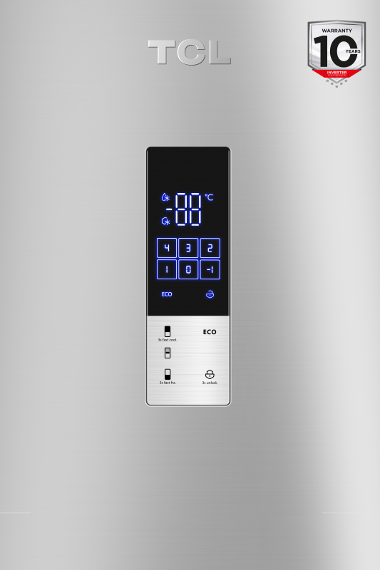 TCL Refrigerator | RP456BLE0 | Energy efficiency class E | Free standing | Combi | Height 201 cm | No Frost system | Fridge net capacity 314 L | Freezer net capacity 142 L | Display | 39 dB | Silver