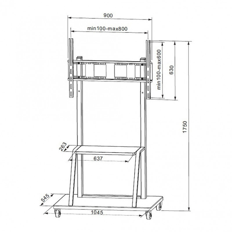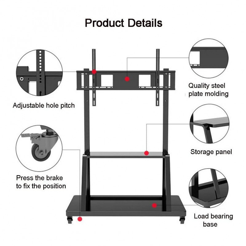 "Techly ICA-TR30. Maximum weight capacity: 150 kg, Minimum screen size: 139.7 cm (55""), Maximum screen size: 2.54 m (100""), Maximum VESA mount: 1200 x 600 mm. Product colour: Black"\n