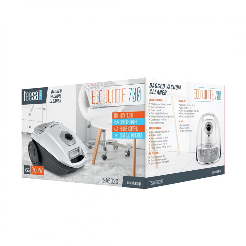 "Teesa Eco White 700" dulkių siurblys su maišeliu