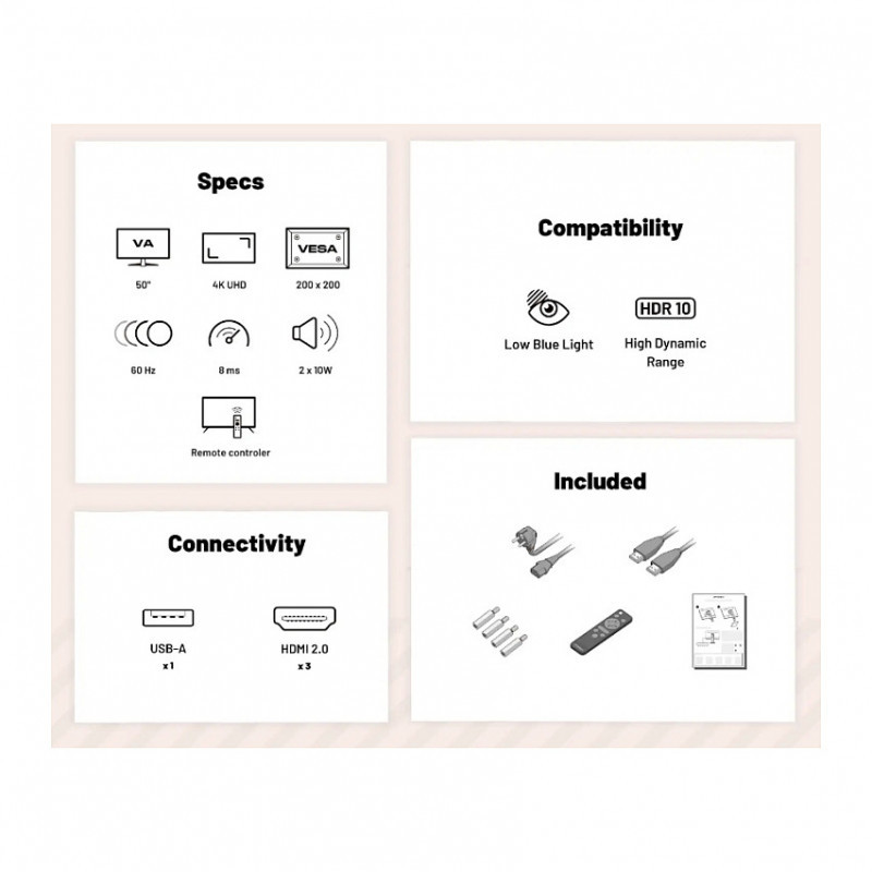 "JAPANNEXT JN-IPS550UHD60F. Display diagonal: 139.7 cm (55""), Display resolution: 3840 x 2160 pixels, HD type: 4K Ultra HD, Display technology: LCD, Response time: 8 ms, Native aspect ratio: 16:9, Viewing angle, horizontal: 178°, Viewing angle, vertical: 178°. Built-in speaker(s). VESA mounting. Product colour: Black"\n
