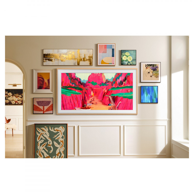 "Samsung The Frame GQ65LS03FWU. Display diagonal: 165.1 cm (65""), Display resolution: 3840 x 2160 pixels, HD type: 4K Ultra HD, Display technology: Neo QLED, Screen shape: Flat. Smart TV. Motion interpolation technology: Motion Xcelerator, Native aspect ratio: 16:9. Digital signal format system: DVB-C, DVB-S2, DVB-T2. Wi-Fi, Ethernet LAN. Product colour: Black"\n