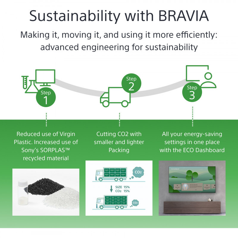 With growing demand for ever larger display screens, there is also the risk of greater resource and energy use. However, Sony’s sustainability commitments are realizing efficiency gains from product development right through to customers viewing screens."
