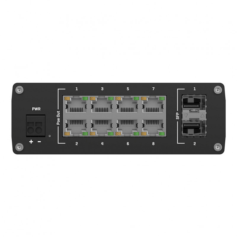 "Teltonika TSW200. Switch type: Unmanaged. Basic switching RJ-45 Ethernet ports type: Gigabit Ethernet (10/100/1000), Basic switching RJ-45 Ethernet ports quantity: 8. MAC address table: 2000 entries, Switching capacity: 20 Gbit/s. Networking standards: IEEE 802.3i, IEEE 802.3u, IEEE 802.3ab, IEEE 802.3x, IEEE 802.3az, IEEE 802.3af, IEEE 802.3at. DC input voltage: 7 - 57 V. Power connector: DC-in jack. Power over Ethernet (PoE). Wall mountable"\n"TSW200 is an industrial Ethernet switch with 2 SFP ports for long-range Fiber-optic communication and 8 Gigabit Ethernet ports that support IEEE802.af and IEE802.3at Power-over-Ethernet standards. Classified as power source equipment (PSE), it enables the centralization of the power supply, providing up to 30 watts per port and reducing the effort to install power."