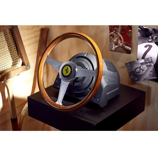 "Thrustmaster 2960822. Product type: Racing wheel, Product colour: Wood, Grey, Material: Metal. Quantity per pack: 1 pc(s), Package width: 108 mm, Package depth: 395 mm. Width: 395 mm, Depth: 108 mm, Height: 3.9 mm. Master (outer) case net weight: 13.4 kg, Products per pallet: 18 pc(s), Master (outer) case width: 560 mm"\n"Celebrate the 55th Anniversary of the Ferrari 250 GTO sports car by becoming one of the select, happy few to get your hands on a limited edition wheel replica of one of the most famous cars in Ferrari’s 70 year history. This authentic replica wheel provides not only a unique vintage feeling in PC games such as the Assetto Corsa 1962 250 GTO DLC but is also a superb collector’s item to proudly display at home. This visually stunning 8:10 scale replica measures 13’’/33 cm in diameter, with a genuine wood finish, metal faceplate and chrome logo plate comes in a collectors gift box with a hot-stamped inner foam display!