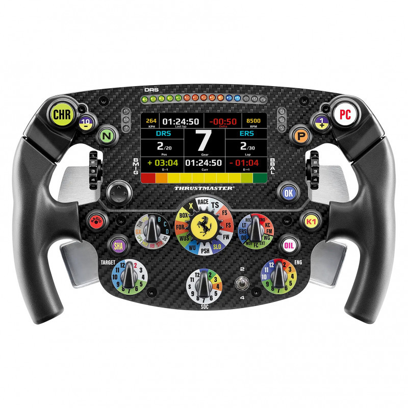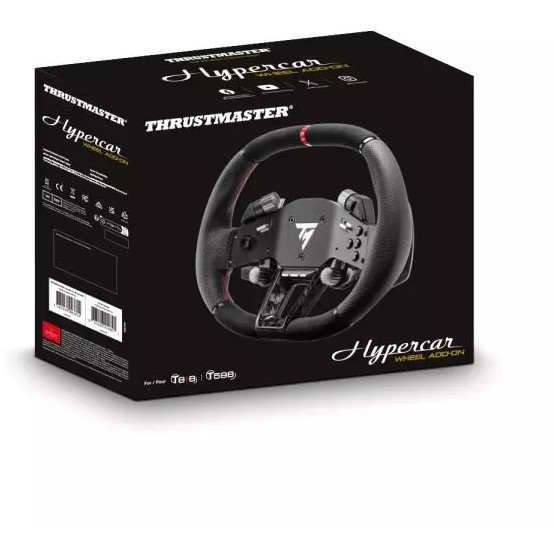 "Thrustmaster Hypercar Wheel Add-On. Device type: Steering wheel, Gaming platforms supported: PC, PlayStation 4, PlayStation 5, Xbox, Xbox One. Product colour: Black, Silver, Housing material: Alcantara, Leather, Compatibility: Thrustmaster T818, T598. Windows operating systems supported: Windows 10, Windows 11. Width: 320 mm, Depth: 110 mm, Height: 250 mm. Package type: Box"\n