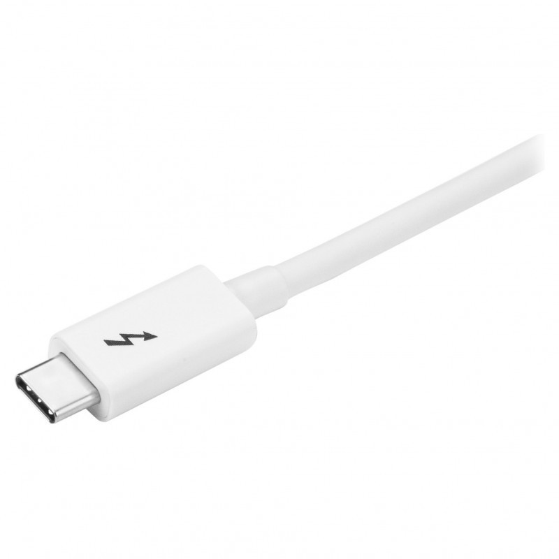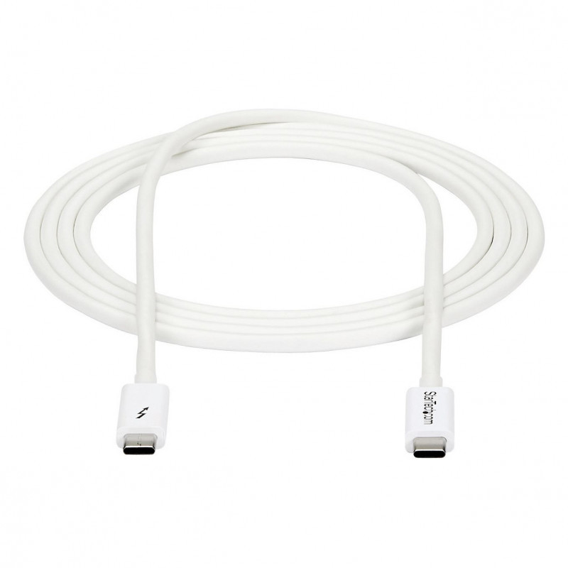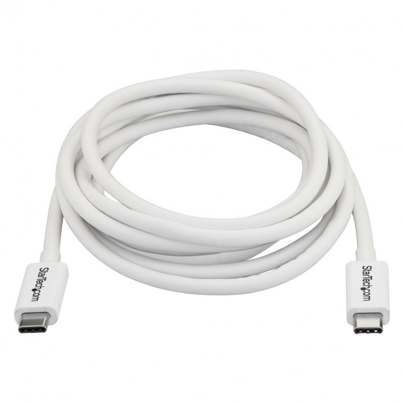 "StarTech.com Thunderbolt 3 Cable - 20Gbps - 2m - White - Thunderbolt, USB, and DisplayPort Compatible. Connector 1: Male, Connector 2: Male, Cable length: 2 m. Compliance certificates: RoHS, Certification: CE, REACH. Weight: 85 g. Quantity per pack: 1 pc(s), Package width: 125 mm, Package depth: 225 mm. Products per master (outer) case: 60 pc(s), Master (outer) case length: 442 mm, Master (outer) case width: 299 mm"\n"Provide twice the data transfer speed of any other cable type, enable full 4K 60Hz video, and power your devices with a single cable