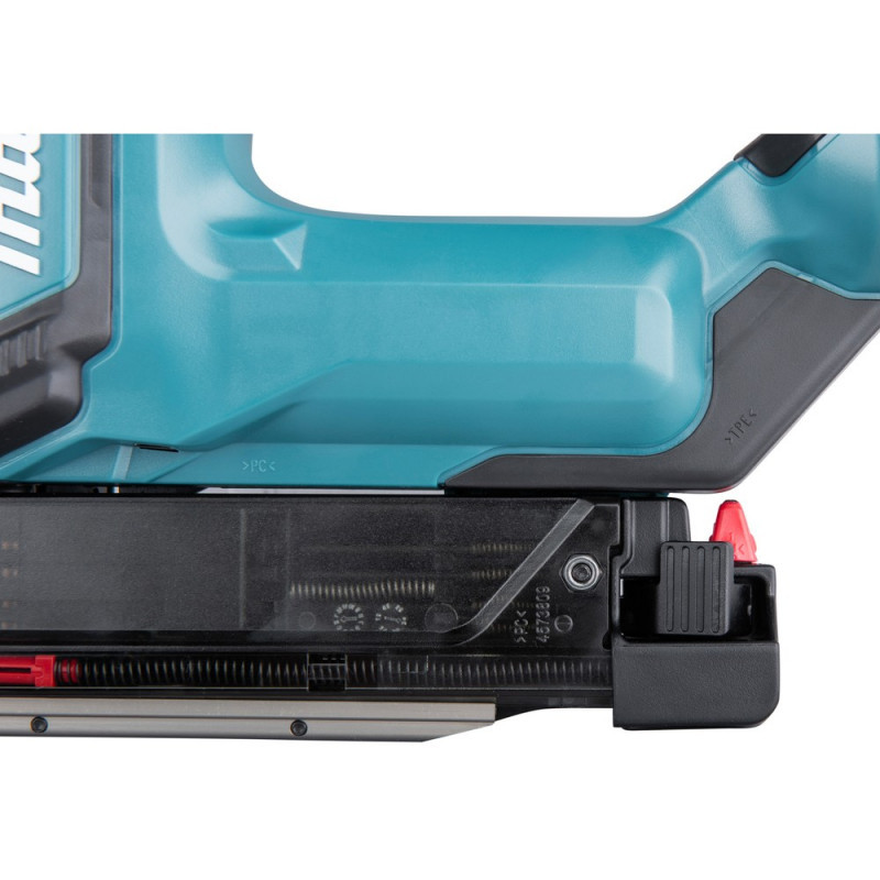 "Makita DPT353Z. Product type: Nailer, Magazine type: Straight magazine, Product colour: Black, Blue. Nail length (min): 1.8 cm, Nail length (max): 3.5 cm, Sound pressure level: 76 dB. Power source: Battery, Battery technology: Lithium-Ion (Li-Ion), Battery voltage: 18 V. Width: 79 mm, Depth: 226 mm, Height: 257 mm"\n