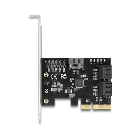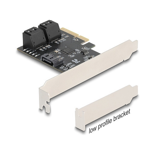 "DeLOCK 90890. Host interface: PCIe, Output interface: SATA, Host interface gender: Male. Product colour: Black, Country of origin: China. Chipset: JMicron JMB585. Windows operating systems supported: Windows 10, Windows 11, Yes, Linux operating systems supported: Linux Kernel 6.5, Yes. Quantity per pack: 1 pc(s), Package type: Box"\n"The PCI Express card by Delock expands a PC by five internal SATA ports. Different devices such as SSDs, hard drives, DVD-drives etc. can be connected to the SATA expansion card."