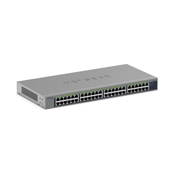 "NETGEAR GS748. Switch type: Unmanaged. Basic switching RJ-45 Ethernet ports type: Gigabit Ethernet (10/100/1000), Basic switching RJ-45 Ethernet ports quantity: 48. Full duplex. MAC address table: 8000 entries. Networking standards: IEEE 802.1p, IEEE 802.3az. Rack mounting"\n"PLUG-AND-PLAY