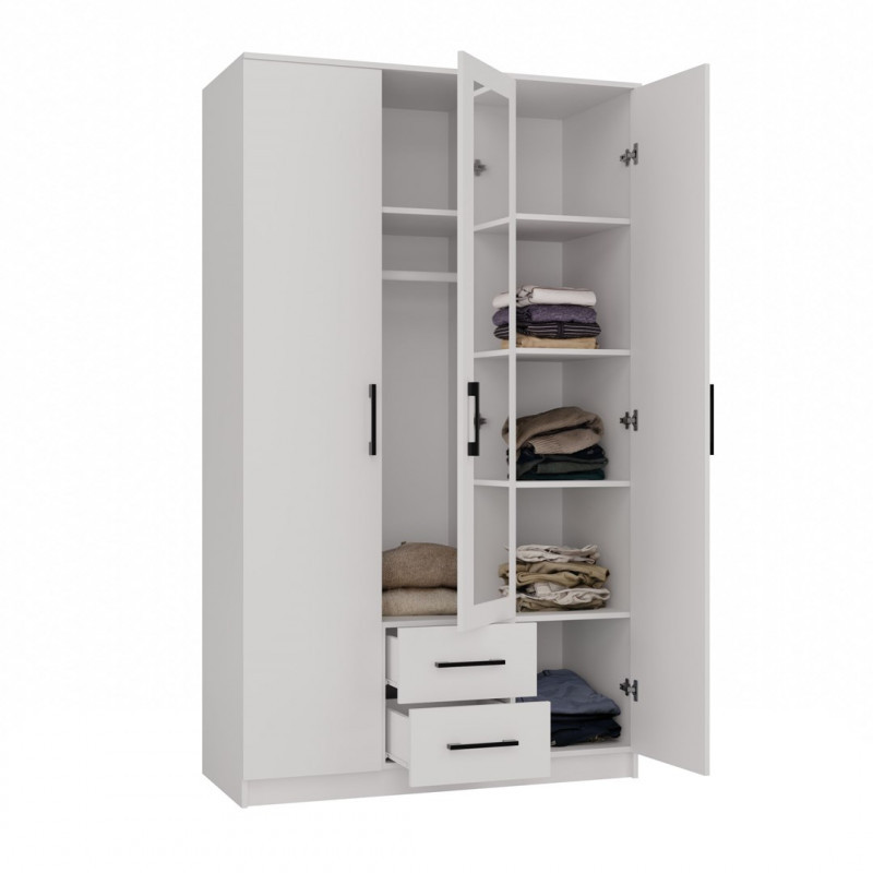 Topeshop ROMANA 120 BIEL miegamojo drabužių / sieninė spinta 6 spintos 3 durys Balta Drabužinė