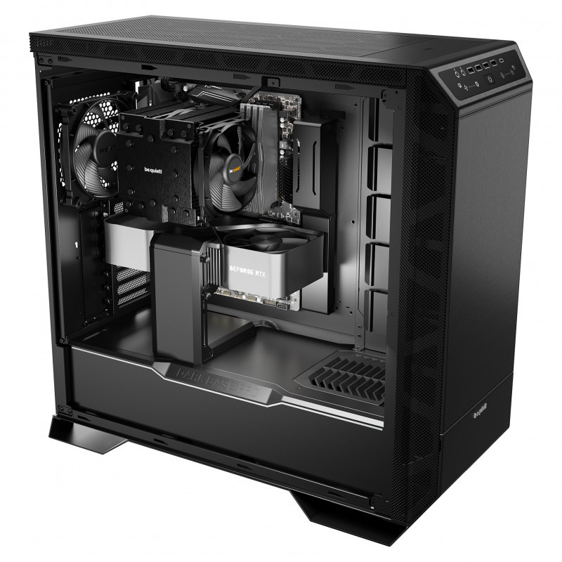 "be quiet! DARK BASE PRO 901 | Black. Form factor: Full Tower, Type: PC, Product colour: Black. Power supply location: Bottom, Supported power supply form factors: ATX, PS2. Front fans installed: 2x 140 mm, Front fans diameters supported: 120,140 mm, Side fans diameters supported: 120 mm. Supported HDD sizes: 2.5,3.5,5.25"". Width: 275 mm, Depth: 604 mm, Height: 569 mm"\n"OUTSTANDING VERSATILITY, PERFORMANCE AND SILENCE