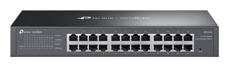"TP-Link Omada ES224G. Switch type: Managed, Switch layer: L2. Basic switching RJ-45 Ethernet ports type: Gigabit Ethernet (10/100/1000), Basic switching RJ-45 Ethernet ports quantity: 24. MAC address table: 8000 entries, Switching capacity: 48 Gbit/s. Rack mounting"\n"Omada Cloud Essentials — A Free and Easy Cloud-Based Network Management