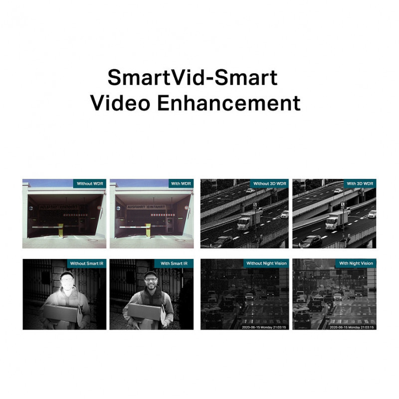 VIGI's professional technologies process videos to greatly improve their quality that is vital to your monitoring, including Smart IR, WDR, 3D DNR, and Night Vision.