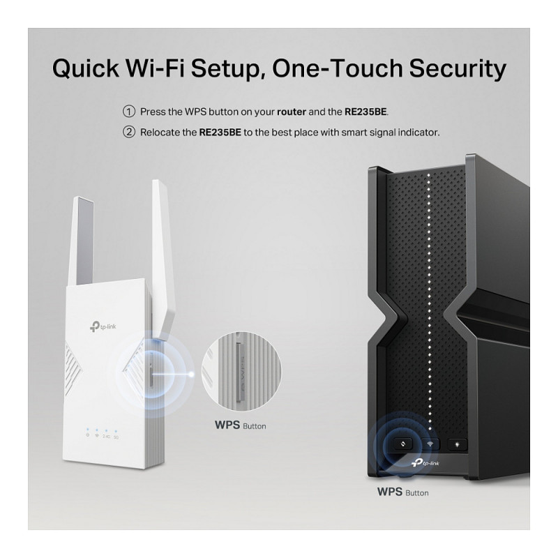 Easy Setup: Plug in and then easily set up via a press of the WPS button or via the Tether App.