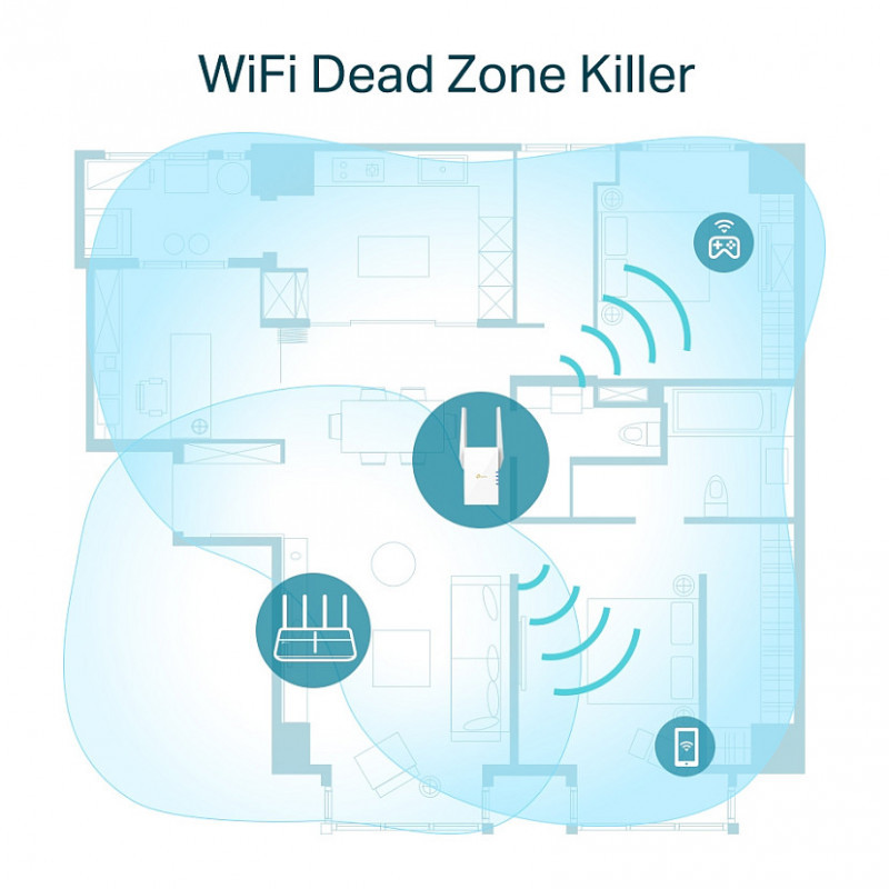 A single router has limited WiFi coverage and always causes WiFi dead zones. RE605X wirelessly connects to your existing router and boosts more WiFi signals throughout your home, allowing you to enjoy smooth WiFi 6 network experiences everywhere with great speed, capacity, and coverage.