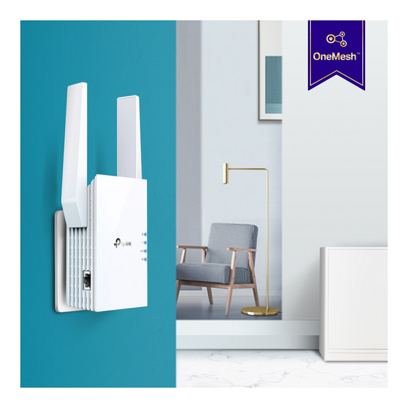 "TP-Link AX1800 Wi-Fi Range Extender. Type: Network repeater, Data transfer rate: 1201 Mbit/s, Ethernet LAN data rates: 10,100,1000 Mbit/s. Antenna type: External, Transmitting power (CE): 2.4 GHz ≤15dBm, 5 GHz ≤21dBm. Cabling technology: 10/100/1000Base-T(X), Networking standards: IEEE 802.11a, IEEE 802.11ac, IEEE 802.11ax, IEEE 802.11b, IEEE 802.11g, IEEE 802.11n, Wi-Fi standards: 802.11a, 802.11b, 802.11g, Wi-Fi 4 (802.11n), Wi-Fi 5 (802.11ac), Wi-Fi 6 (802.11ax). Product colour: White, Quantity per pack: 1 pc(s), Country of origin: China. AC input voltage: 100 - 240 V, AC input frequency: 50/60 Hz, Power consumption (typical): 10 W"\n"Expand Your Ultimate WiFi Experience