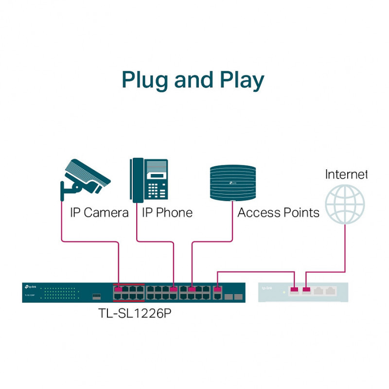 When your total power consumption exceeds 250 W, Intelligent Power Management automatically cuts lower priority ports’ power to ensure high-priority ports’ power supply. This protects the device from power overload operation. It also automatically detects the required PoE power for your device and protects your non-PoE equipment from being damaged.