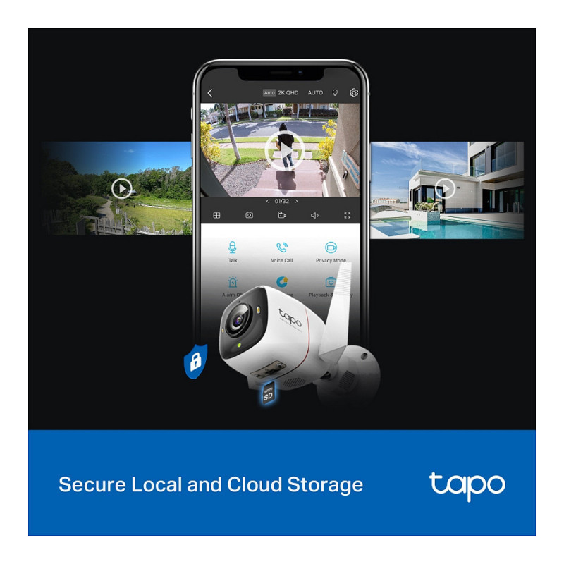 Save recorded videos to a microSD card (up to 512 GB) or by using Tapo Care cloud services.