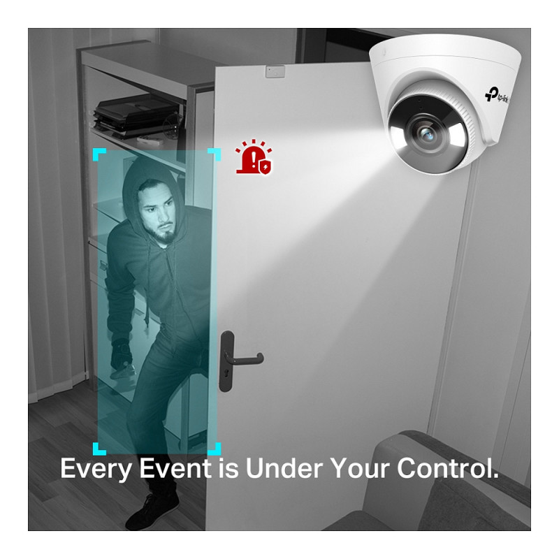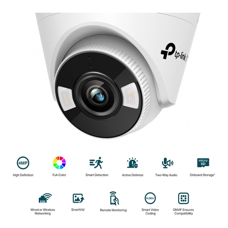 "TP-Link VIGI C440(4mm). Type: IP security camera, Placement supported: Indoor & outdoor, Connectivity technology: Wired. Mounting type: Ceiling, Product colour: White, Form factor: Turret. Angle of rotation: 360°, Lens viewing angle, horizontal: 79°, Lens viewing angle, vertical: 43°. Sensor type: CMOS, Optical sensor size: 25.4 / 3 mm (1 / 3""). Detect distance: 80 m, Observe distance: 33 m, Recognize distance: 16 m"\n"All The Colors, All The Time