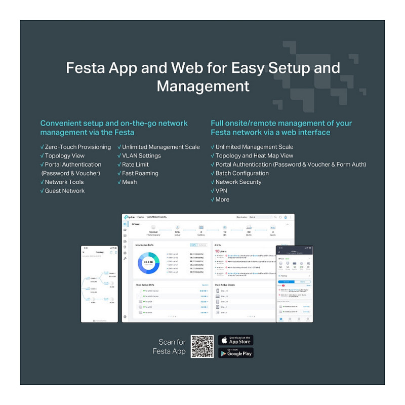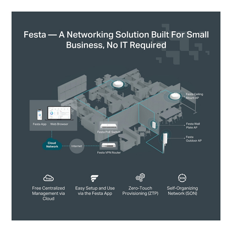 Festa offers business-class features with consumer-inspired simplicity. Our free cloud-based centralized management is accessible via the Festa app or web, providing essential features for small businesses without the complexity required by larger-scale operations.
