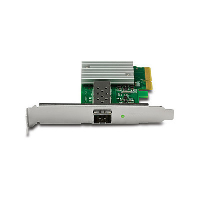 "Trendnet TEG-10GECSFP. Internal. Connectivity technology: Wired, Host interface: PCI Express, Interface: Fiber. Maximum data transfer rate: 10000 Mbit/s. Product colour: Green, Silver"\n"TRENDnet’s 10 Gigabit PCIe SFP+ Network Adapter, model TEG-10GECSFP, converts a free PCI Express slot into a 10 Gigabit SFP+ slot. Advanced features include jumbo frame and VLAN tagging support. The included standard and low profile brackets are compatible with Windows® and Linux® desktop computer designs.