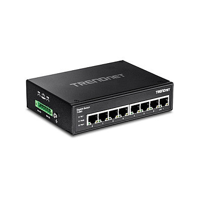 "Trendnet TI-G80. Switch type: Unmanaged, Switch layer: L2. Basic switching RJ-45 Ethernet ports type: Gigabit Ethernet (10/100/1000), Basic switching RJ-45 Ethernet ports quantity: 8. MAC address table: 8000 entries, Switching capacity: 16 Gbit/s. Wall mountable"\n"TRENDnet’s TI-G80 is a reliable IP30 unmanaged DIN-rail switch with hardened components rated for extreme industrial environments. It offers 8 Gigabit ports and a 16 Gbps switching capacity. Dual redundant power inputs (power adapter sold separately: TI-M6024) and a power failure alarm output trigger support zero downtime applications."