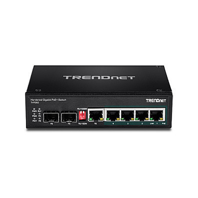 "Trendnet TI-PG62. Switch type: Unmanaged. Basic switching RJ-45 Ethernet ports type: Gigabit Ethernet (10/100/1000), Basic switching RJ-45 Ethernet ports quantity: 4. Full duplex. MAC address table: 1000 entries, Switching capacity: 12 Gbit/s. Networking standards: IEEE 802.3, IEEE 802.3ab, IEEE 802.3af, IEEE 802.3at, IEEE 802.3u, IEEE 802.3x, IEEE 802.3z. Power over Ethernet (PoE). Wall mountable"\n"TRENDnet’s TI-PG62 is a reliable IP30 unmanaged DIN-rail PoE+ switch with a rugged housing rated for extreme industrial environments. It offers 4 Gigabit PoE+ ports, one shared Gigabit port (RJ-45 / SFP), one dedicated SFP slot, and a 12 Gbps switching capacity. Dual redundant power inputs and a power failure alarm relay.
