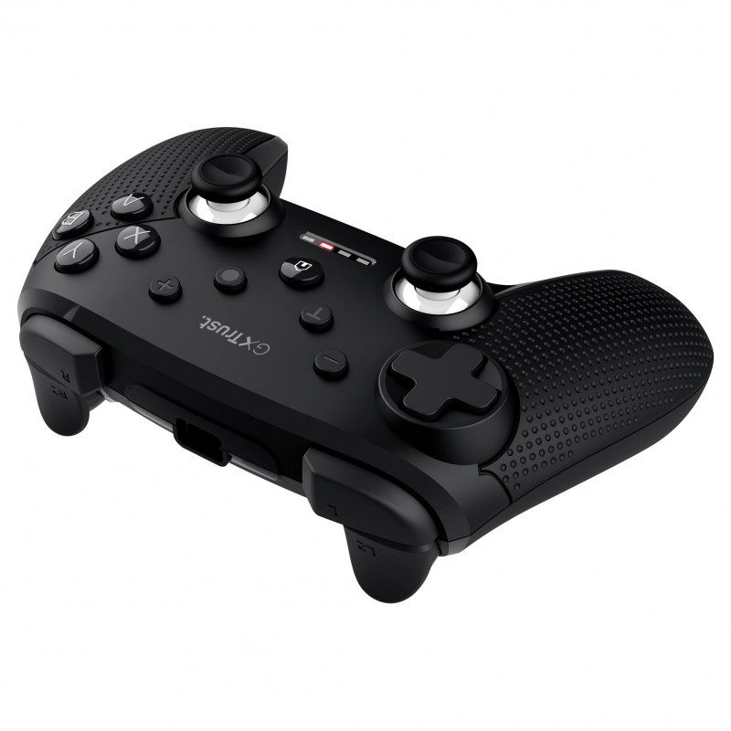 "Trust GXT 542 MUTA. Device type: Joystick, Gaming platforms supported: Android, Nintendo Switch, PC, Tablet PC, iOS, Gaming control function buttons: D-pad, Directional buttons, Select button, Start button, Turbo button. Connectivity technology: Wired & Wireless, Device interface: Bluetooth/RF/USB, USB connector type: USB Type-C. Product colour: Black, Housing material: Recycled plastic, Cable length: 3 m. Power source: Cable/Battery, Battery type: Built-in. Windows operating systems supported: Windows 10, Windows 11, Mac operating systems supported: Mac OS X 10.15 Catalina, Mac OS X 11.0 Big Sur, Mac OS X 12.0 Monterey, Mobile operating systems supported: Android, iOS"\n"WIRELESS GAMING CONTROLLER GXT 542 MUTA