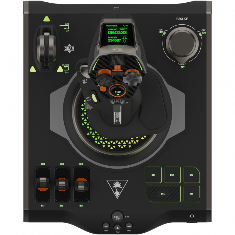 The full-color Head Up Display (HUD) provides access to diagnostics and performance adjustments, allowing you to effortlessly tweak your setup on-the-fly. Adjustment options include axis response curves, rudder lock, lighting adjustment touchpad response and Turtle Beach audio enhancements for any connected 3.5mm headset.