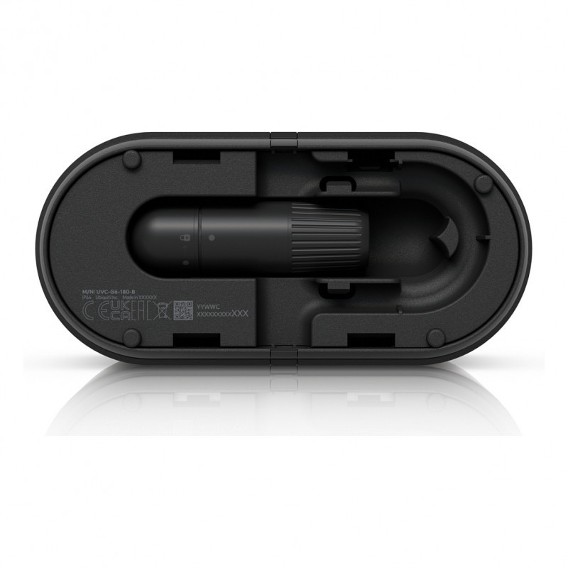 "Ubiquiti G6 180. Type: IP security camera, Placement supported: Indoor & outdoor, Connectivity technology: Wired. Mounting type: Ceiling/Pole, Product colour: Black, Housing material: Aluminium, Polycarbonate (PC). Lens viewing angle, horizontal: 180°, Lens viewing angle, vertical: 56.7°. Optical sensor size: 25.4 / 1.8 mm (1 / 1.8""). Night vision distance: 20 m, LED type: IR"\n"Indoor/outdoor dual sensor 16MP 20 FPS PoE+ camera, with a Multi-TOPS AI Engine and panoramic 180° coverage."