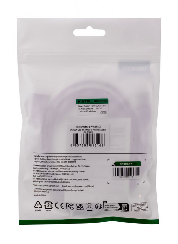 Ugreen 10316 USB kabelis USB 2.0 2 m USB A Juoda