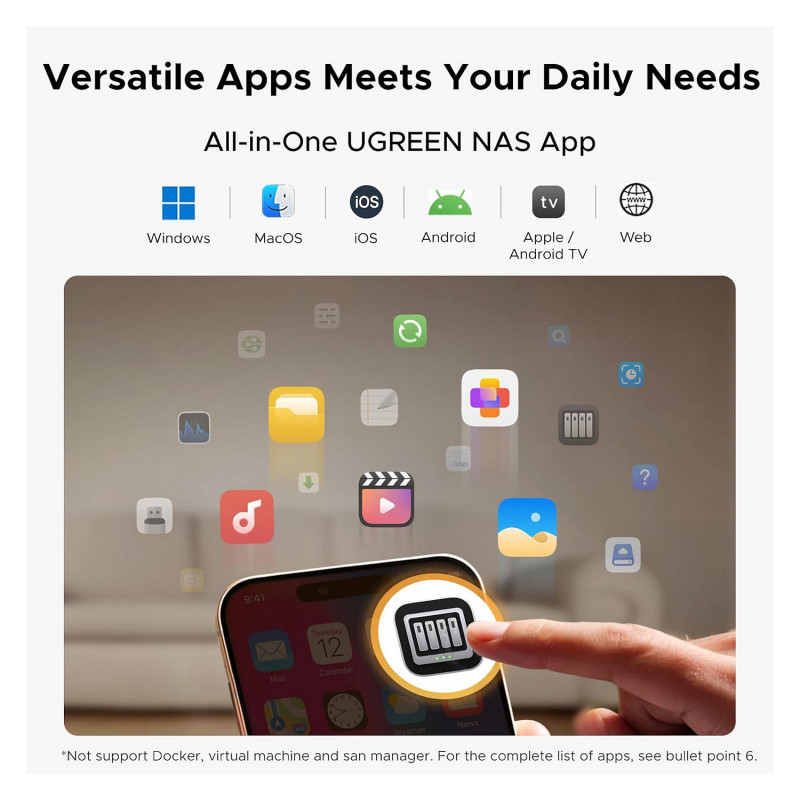 Set Your Devices Free, Expand Your Digital World: This unified storage hub supports massive capacity up to 60TB.*Storage drives not included. Stop Deleting, Start Storing. You can store 20 million 3MB images, or 2 million 30MB songs, or 40K 1.5GB movies or 62 million 1MB documents! UGREEN NAS is a better way to free up storage across all your devices such as phones, computers, tablets and also does automatic backups across devices regardless of the operating system—Window, iOS, Android or macOS.