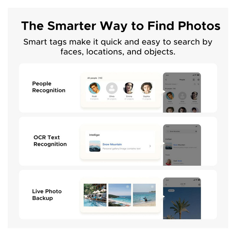 Let AI Better Organize Your Memories: UGREEN NAS uses AI to tag faces, locations, texts, and objects—so you can effortlessly find any photo by searching for who or what's in it in seconds. It also automatically finds and deletes similar or duplicate photo, backs up live photos and allows you to share them with your friends or family with just one tap. Everything stays effortlessly organized, powered by intelligent tagging and recognition.