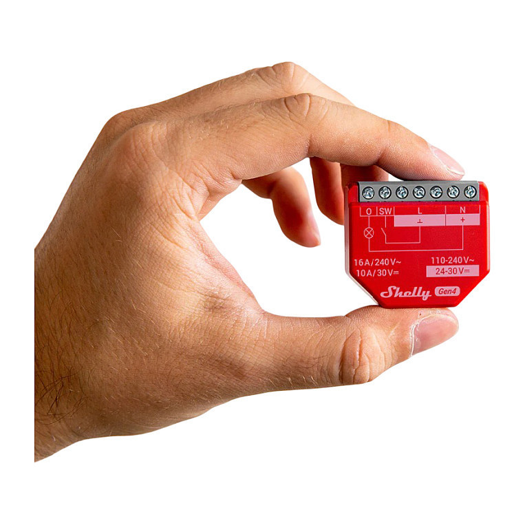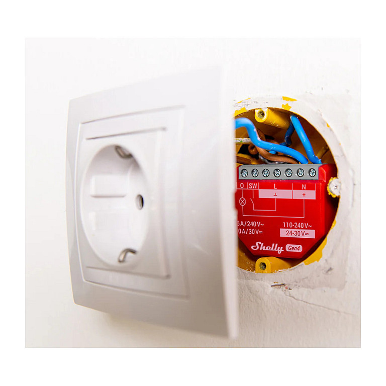"Shelly 1PM Gen4. Type: Smart switch, Connectivity technology: Wireless, Housing material: Plastic. AC input voltage: 110 - 240 V, Power consumption (typical): 1 W, Maximum switching voltage (AC): 240 V. Width: 42 mm, Depth: 16 mm, Height: 37 mm. Quantity per pack: 1 pc(s)"\n