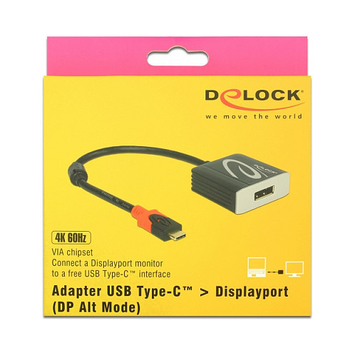 This Delock adapter is suitable for the connection of an HDMI monitor to a computer with USB-C™ interface and Displayport alternate mode support. Thus, the adapter can be connected to different laptops like Macbook, Chromebook and similar. In addition, the adapter can also be operated on a Thunderbolt™ 3 interface."