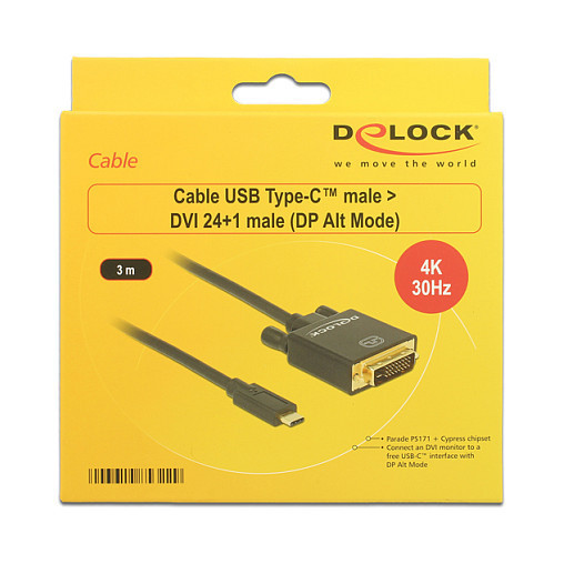 USB C > DVI 24+1 Stecker DP-Alt Mode 4K 30 Hz 3 m schwarz Delock