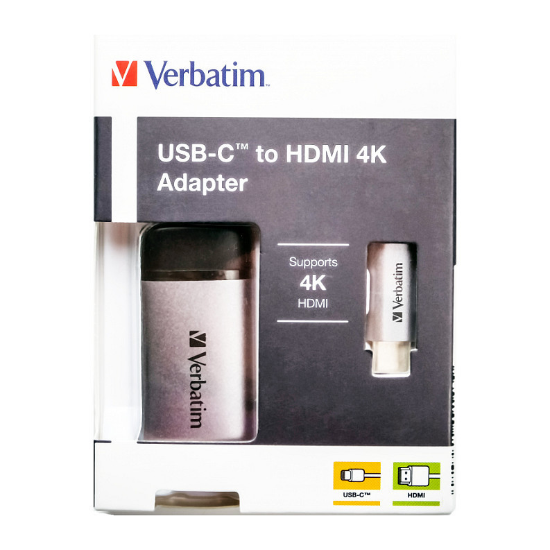 The Verbatim USB-C to HDMI 4K adapter lets you connect your USB-C or Thunderbolt 3 (USB-C) enabled smartphones, laptops and MacBooks to a projector, HDTV or monitor that supports HDMI. It is the ideal companion for the latest slimline laptops and MacBooks that come with limited ports. No need to replace your whole setup when you upgrade your laptop, simply connect the adapter to a USB-C port on your laptop and then plug in an HDMI cable to connect to your display.