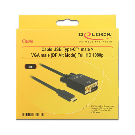 USB C > VGA Stecker DP-Alt Mode Full HD 1080p 3 m schwarz Delock