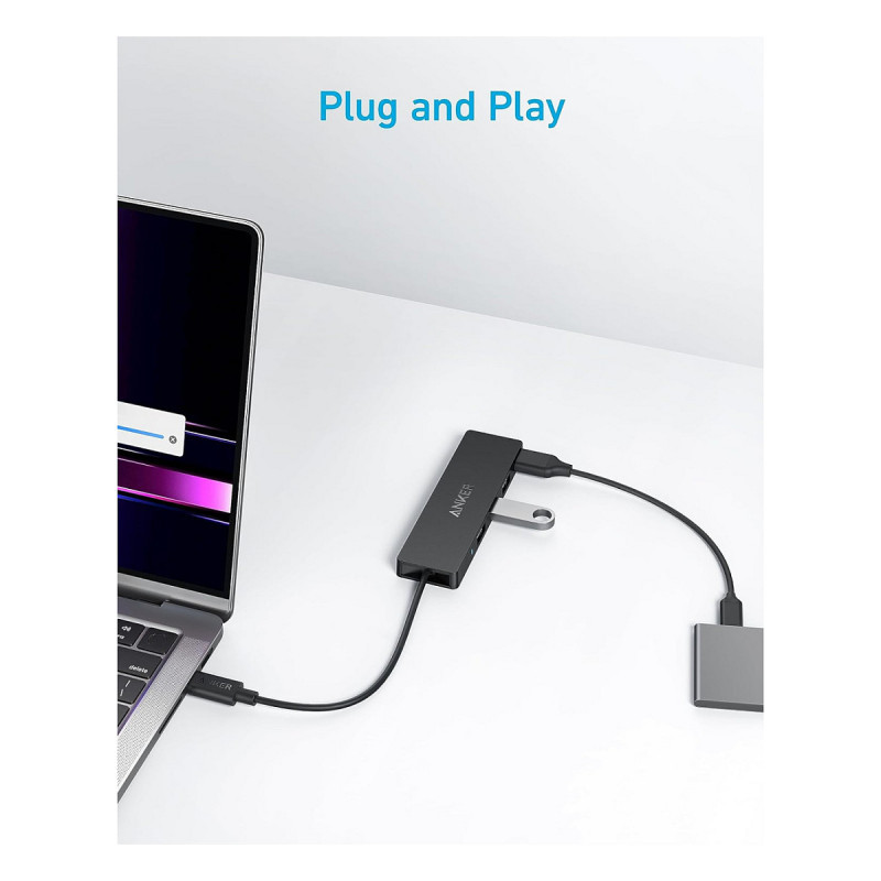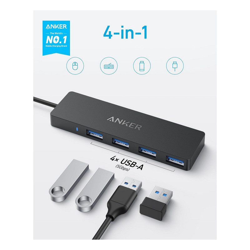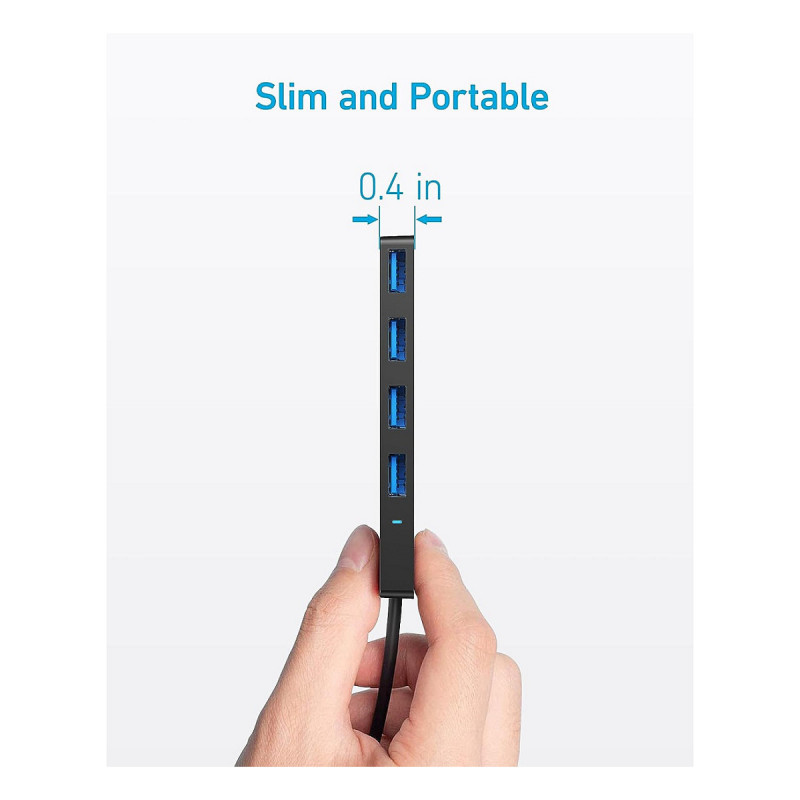 "Anker Ultra Slim. Host interface: USB Type-C, Hub interfaces: USB 3.2 Gen 1 (3.1 Gen 1) Type-A. Data transfer rate: 5000 Mbit/s, Product colour: Black. Width: 103 mm, Depth: 30 mm, Height: 10 mm. Quantity per pack: 1 pc(s)"\n