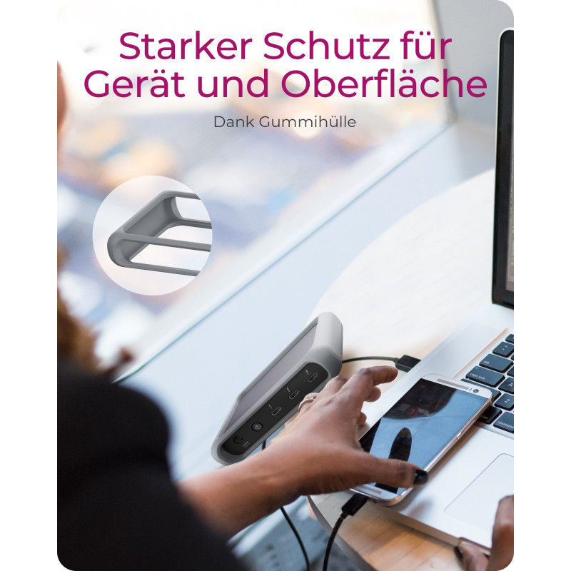 When you connect the hub to your notebook, your notebook can draw up to 85 watts of charging power via the Power Delivery feature when needed. With 85 watts notebook charging power, the IB-HUB801-TB4 outperforms most comparable Thunderbolt™ 4 hubs, which usually deliver up to 60 watts in comparison.