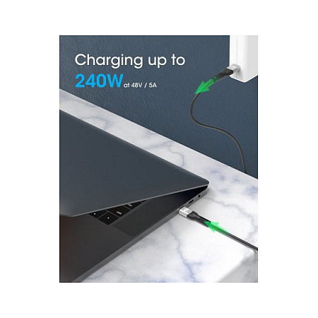 "Manhattan Fast USB-C to USB-C Cable (240W), 1m, 240W Laptop Charging + High-Speed Data & Video, Works with ALL Laptops (Note additional USB-C 240W wall charger needed), 40 Gbps Ultra-Fast Transfers, Black, 3 year Warranty. Cable length: 1 m. Connector 1: USB C, Connector 2: USB C, USB version: USB4 Gen 3x2, Maximum data transfer rate: 40 Gbit/s, Connector contacts plating: Nickel/Gold, Product colour: Black"\n"USB4 240W 40G USB-C charging cable M/M with Power Delivery 3.1 for the next generation of USB charging