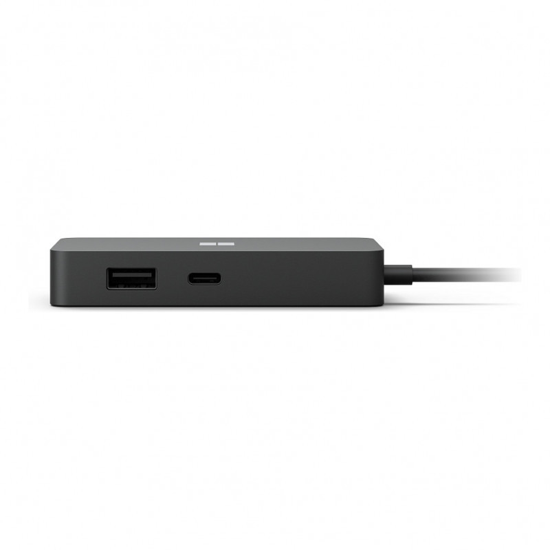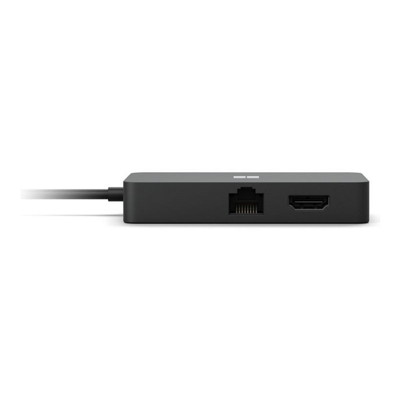 "Microsoft USB-C Travel Hub Black. USB version: 3.2 Gen 2 (3.1 Gen 2), USB connector type: USB Type-A, USB Type-C, Refresh rate at maximum resolution: 60 Hz. Product colour: Black. Windows operating systems supported: Windows 10, Windows 10 Home, Windows 10 Pro, Windows 7 Professional, Windows 8, Other operating systems supported: Android. Width: 88.9 mm, Depth: 48 mm, Height: 14.9 mm. Package type: Box"\n"Have the ports you need with this multi-port adapter that gives you five ways to connect to networks, displays, and more, including USB-C.®